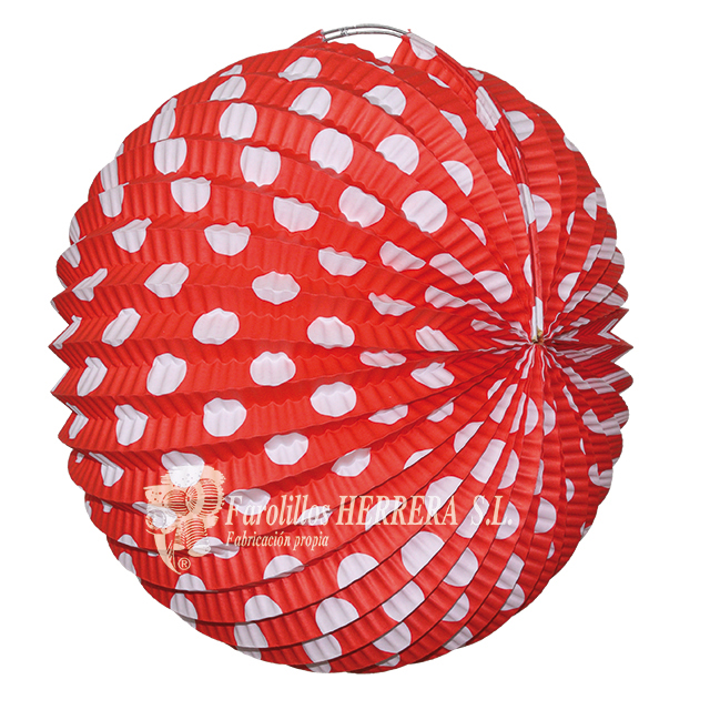 Catálogo Donde estamos Inicio <<atrás Ref. 3101 Farolillo de 30 cm de diámetro, colores lisos y lunares sevillanos. Rojo y Blanco