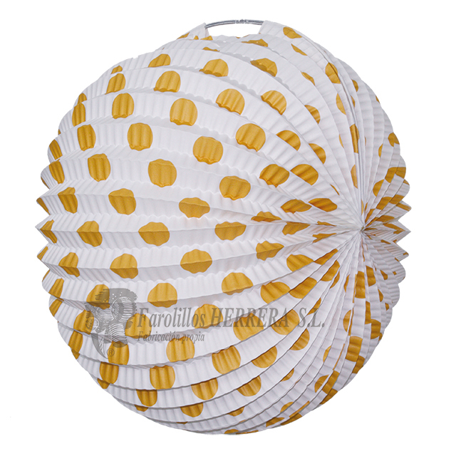 Catálogo Donde estamos Inicio <<atrás Ref. 3116 Farolillo de 30 cm de diámetro, colores lisos y lunares sevillanos. Blanco y Alvero